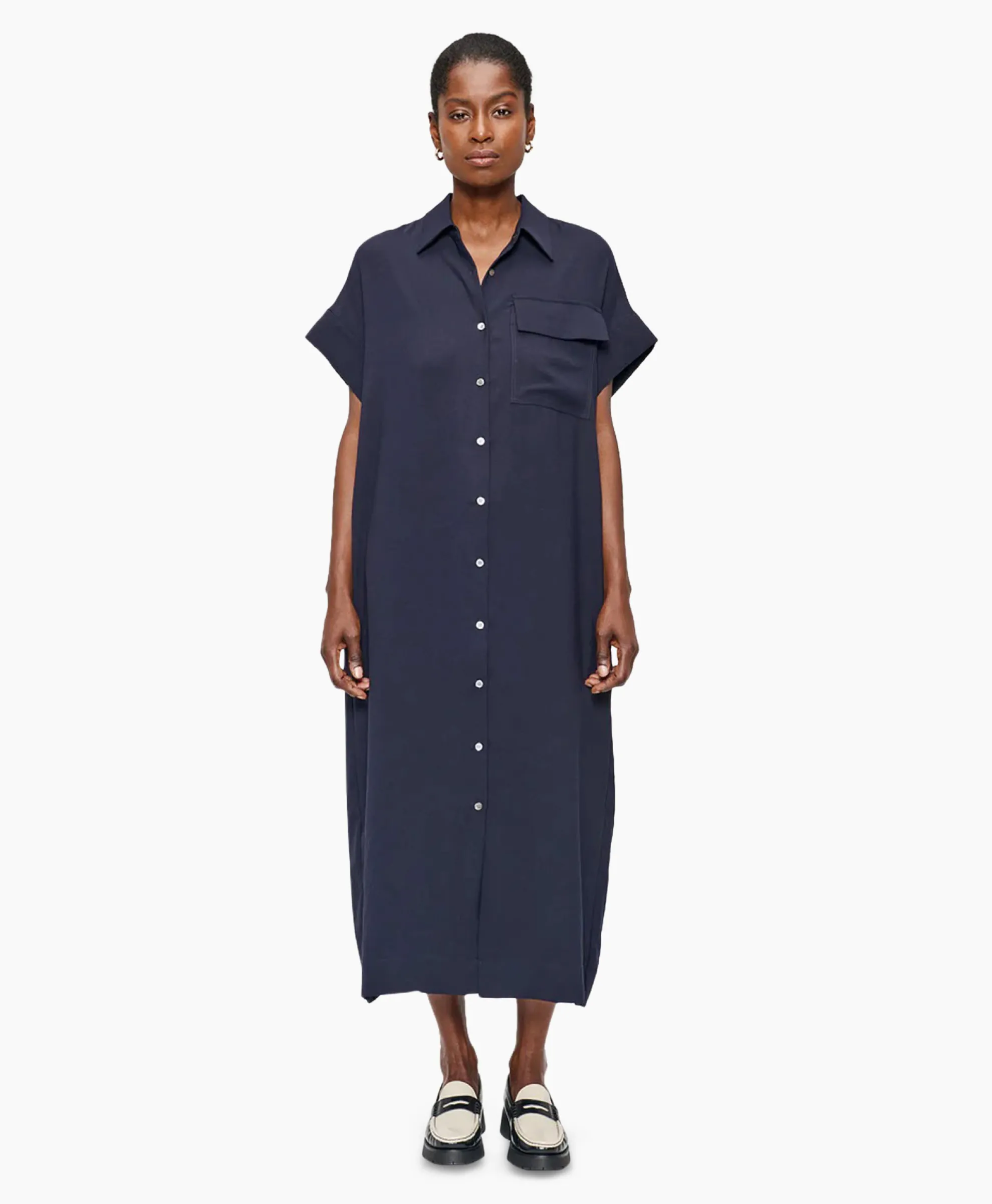 Zenggi Maxi Jurk Fluid Shirt Donker Blauw